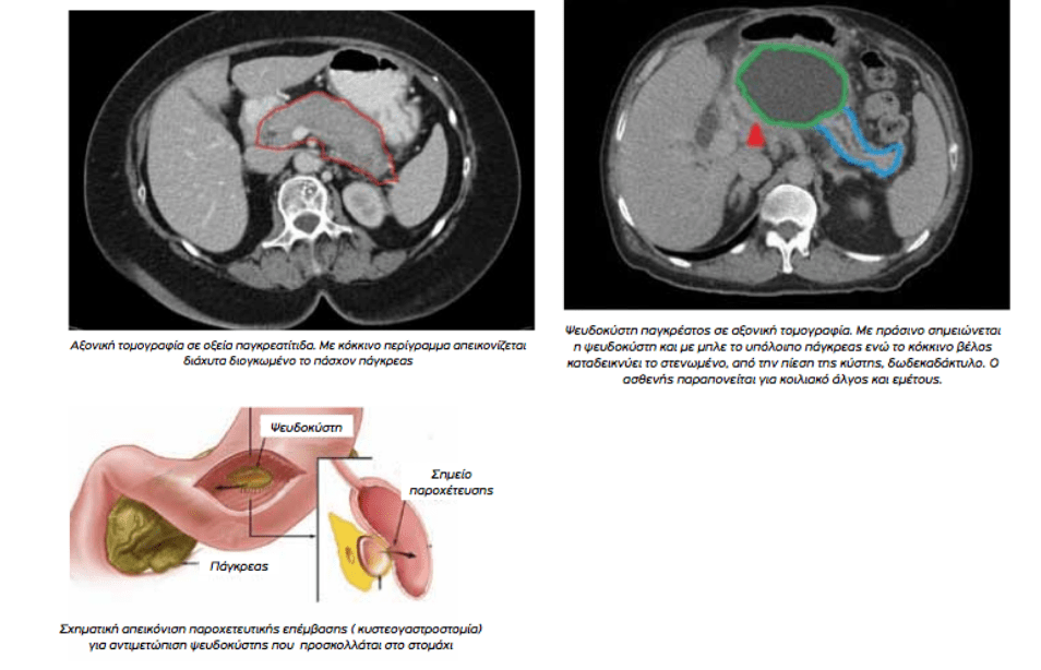 Είναι κυστικοί σχηματισμοί με περιεχόμενο παγκρεατικό υγρό με ένζυμα. Η αντιμετώπισή τους είναι χειρουργική παροχέτευση.